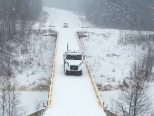 Over the past years, the FPInnovations team, in collaboration with technology providers, has tested semi-autonomous platooning trucks on paved test tracks and class 1 and 2 gravel forest roads. These tests focused on executing specific scenarios such as following a planned itinerary without human intervention, carrying out lane changes, and evaluating the follower vehicle’s reaction during vehicle cut ins. The team is now aiming to partner with a new technology provider to evaluate the performance of a single autonomous class 8 truck, demonstrating SAE level 2 autonomy on paved and gravel Quebec roads in winter conditions with a safety driver present.1 The program will employ a step-by-step gradual approach starting with the autonomous truck driving bobtail (without a trailer), progressing to empty trailer runs, followed by loaded trailer test runs and actual material deliveries.